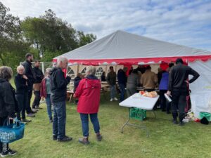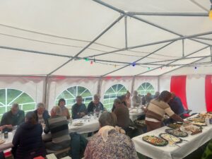 Dagen inden arbejdsdagen mødes bestyrelse og et par frivillige for at rejse teltet.